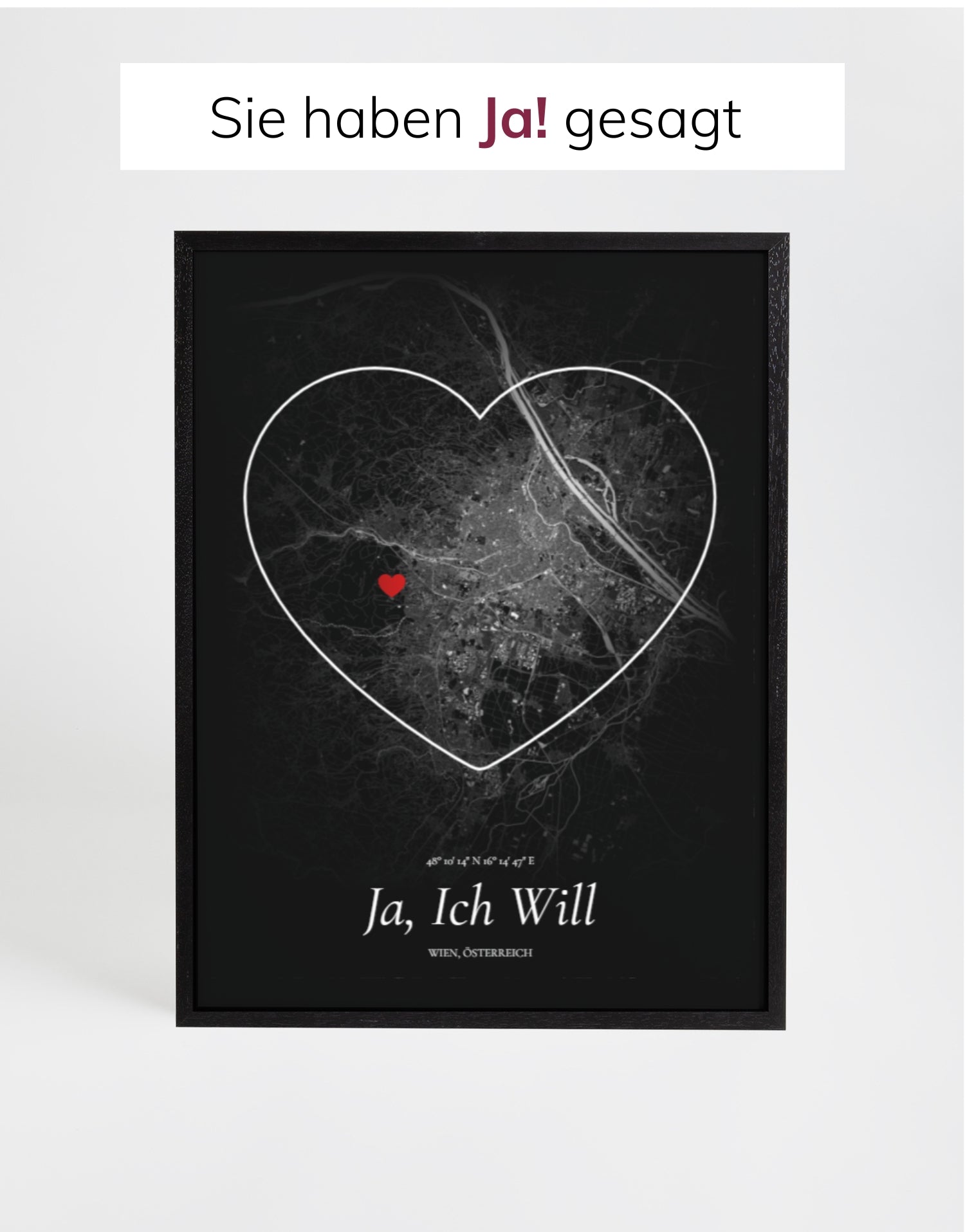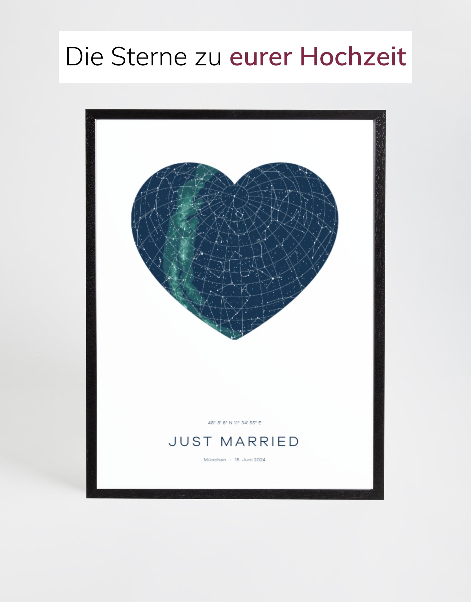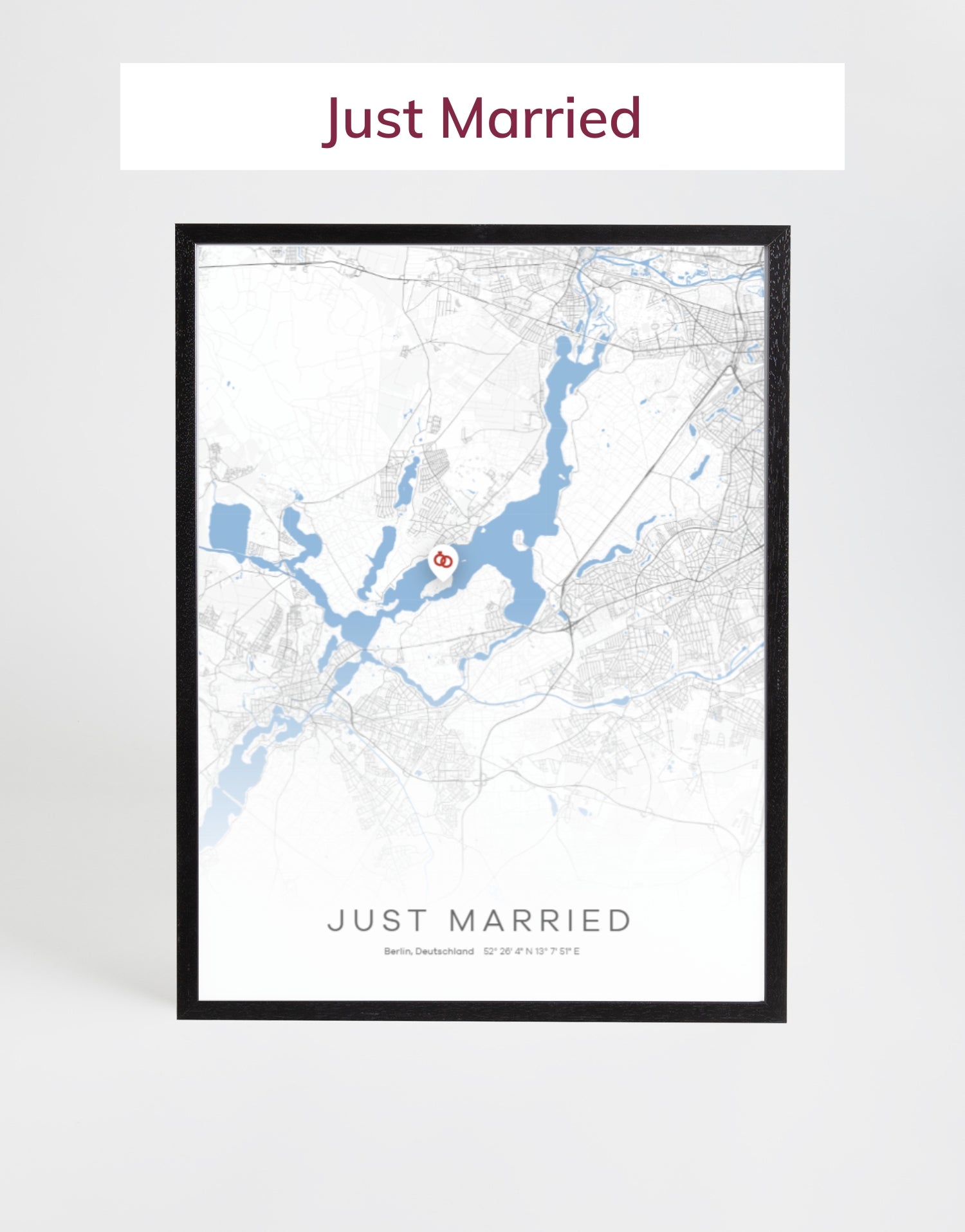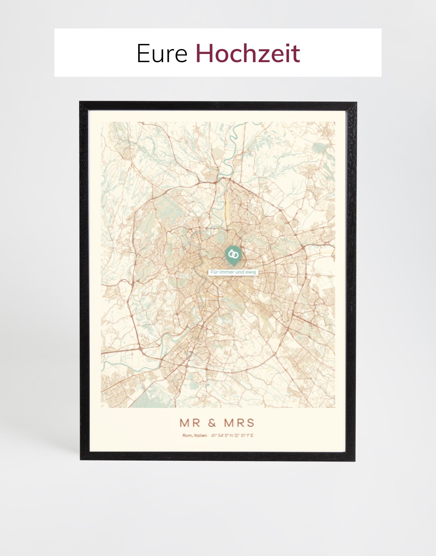 Schenke dem glücklichen Paar zum Hochzeitstag eine personalisierte Karte mit dem Ort und Datum der Hochzeit. Ein individuelles und kreatives Hochzeitsgeschenk für bleibende Erinnerungen.