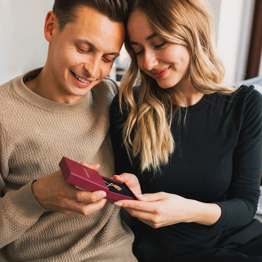 Personalisierte Halskette - wähle ein Symbol, füge eine Widmung, eure Namen und Datum hinzu. Das perfekte Geschenk zum Jahrestag.