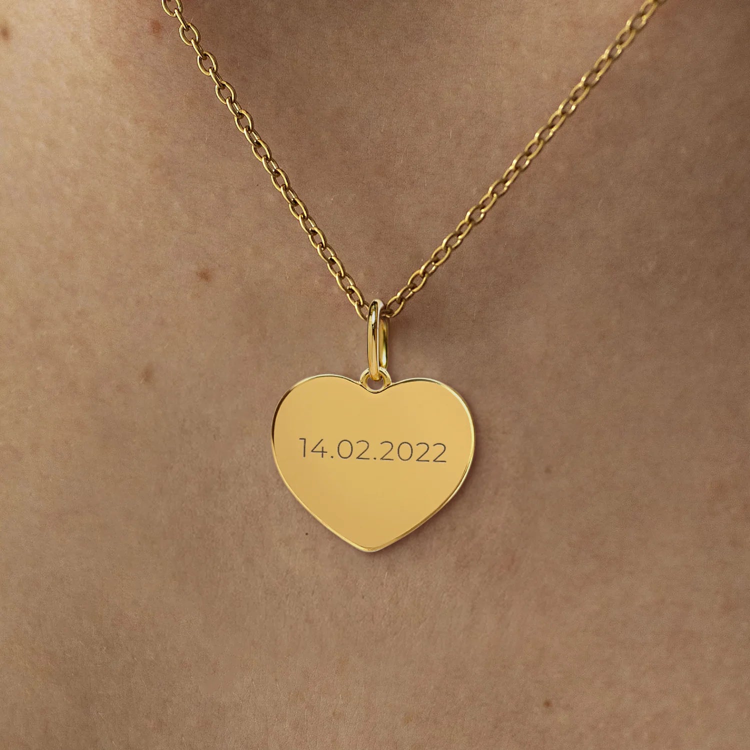 Personalisierte Herzkette mit Gravur – ein besonderes Valentinstagsgeschenk für deine Partnerin. Wähle ein Design und füge Widmung, Namen und Datum hinzu.