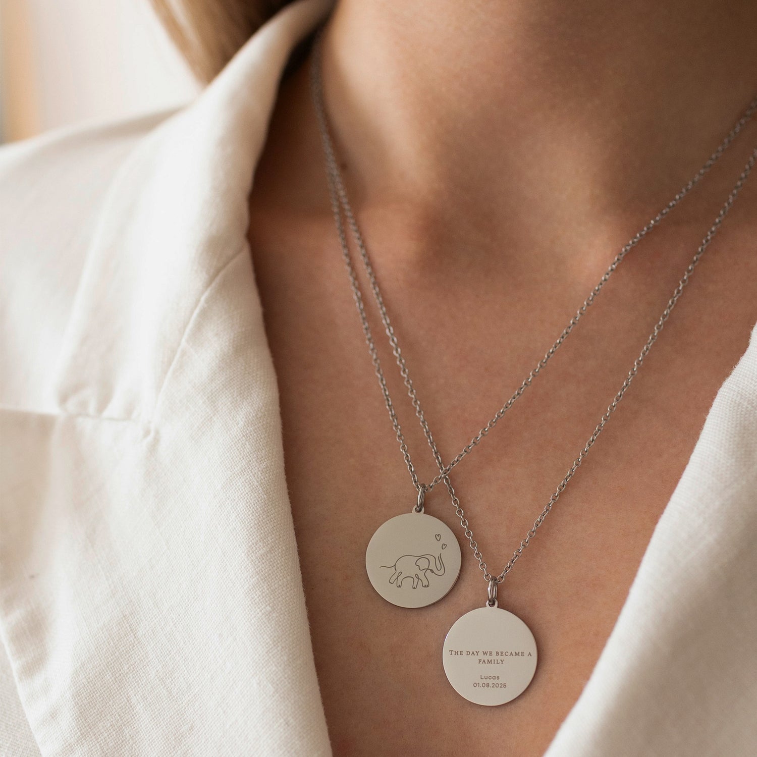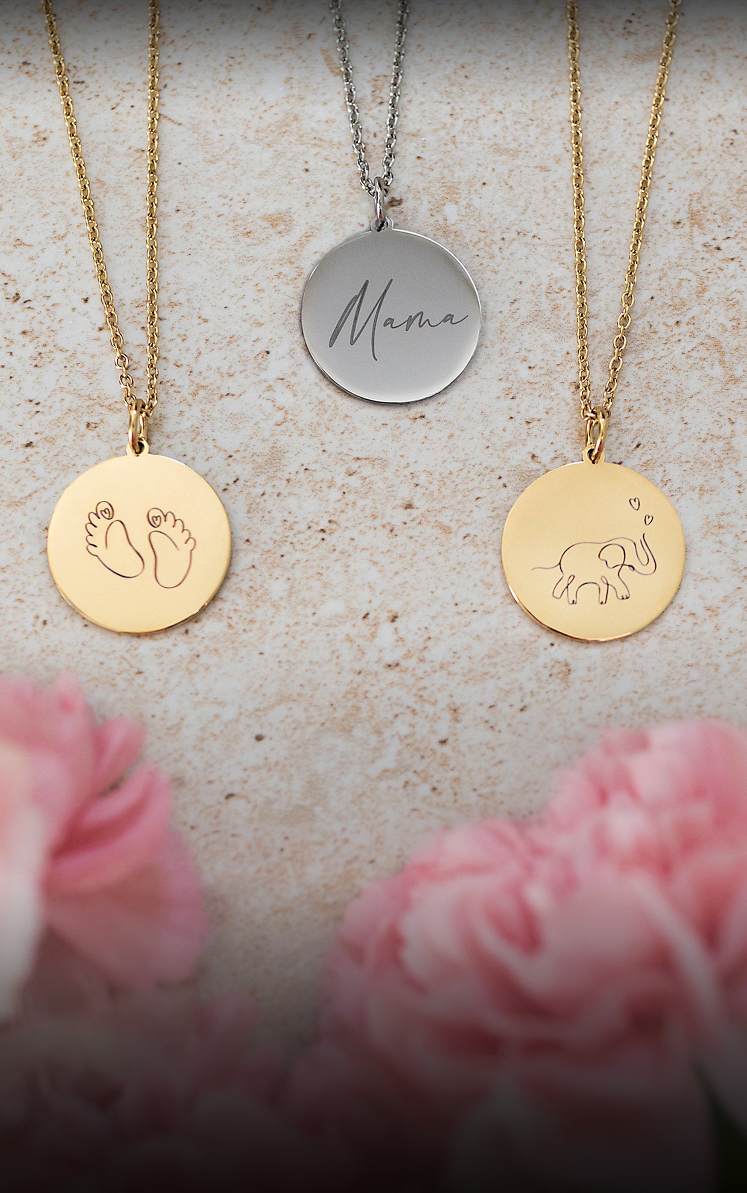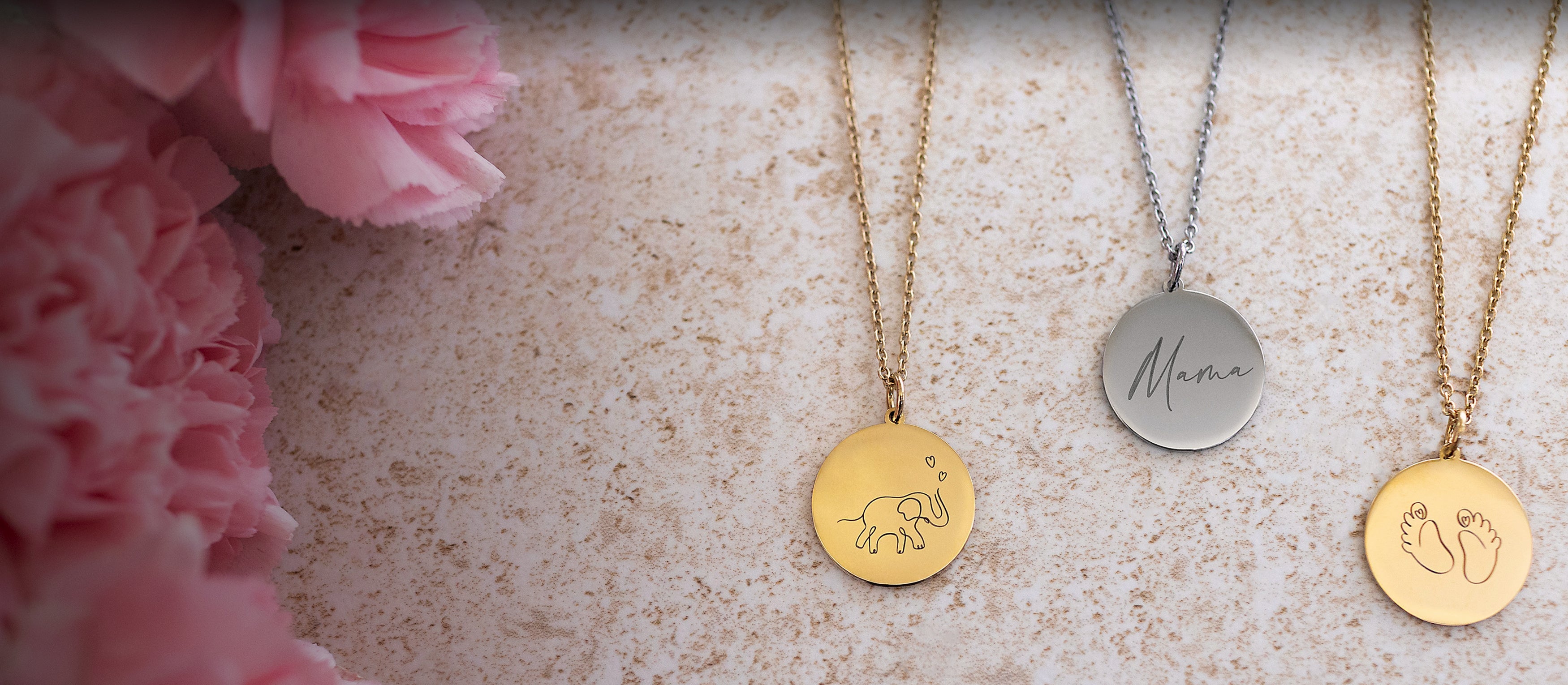 Geschenk zur Geburt - personalisiere eine Halskette mit Symbol und dem Namen des Kindes und mach einer neuen Mama eine Freude.