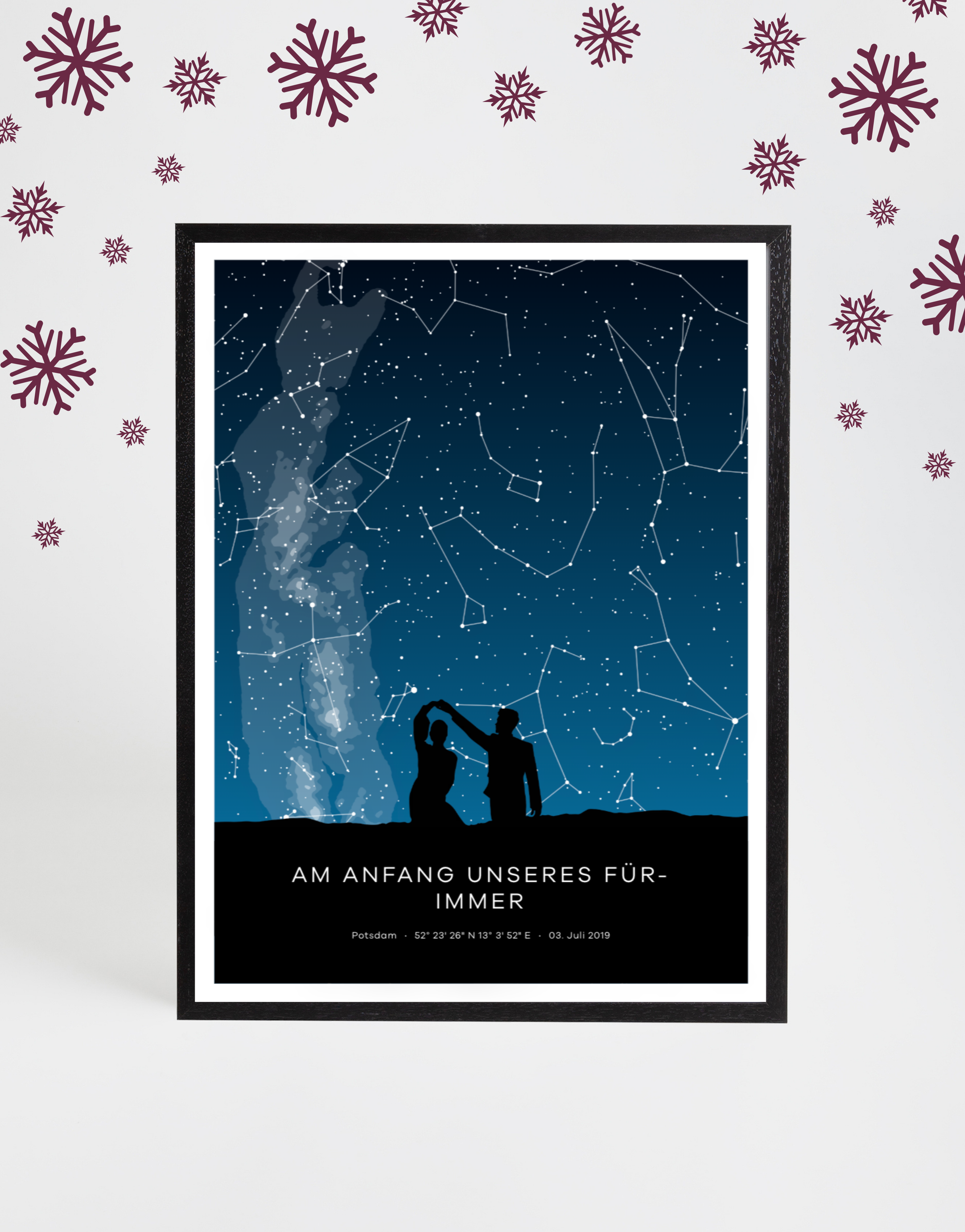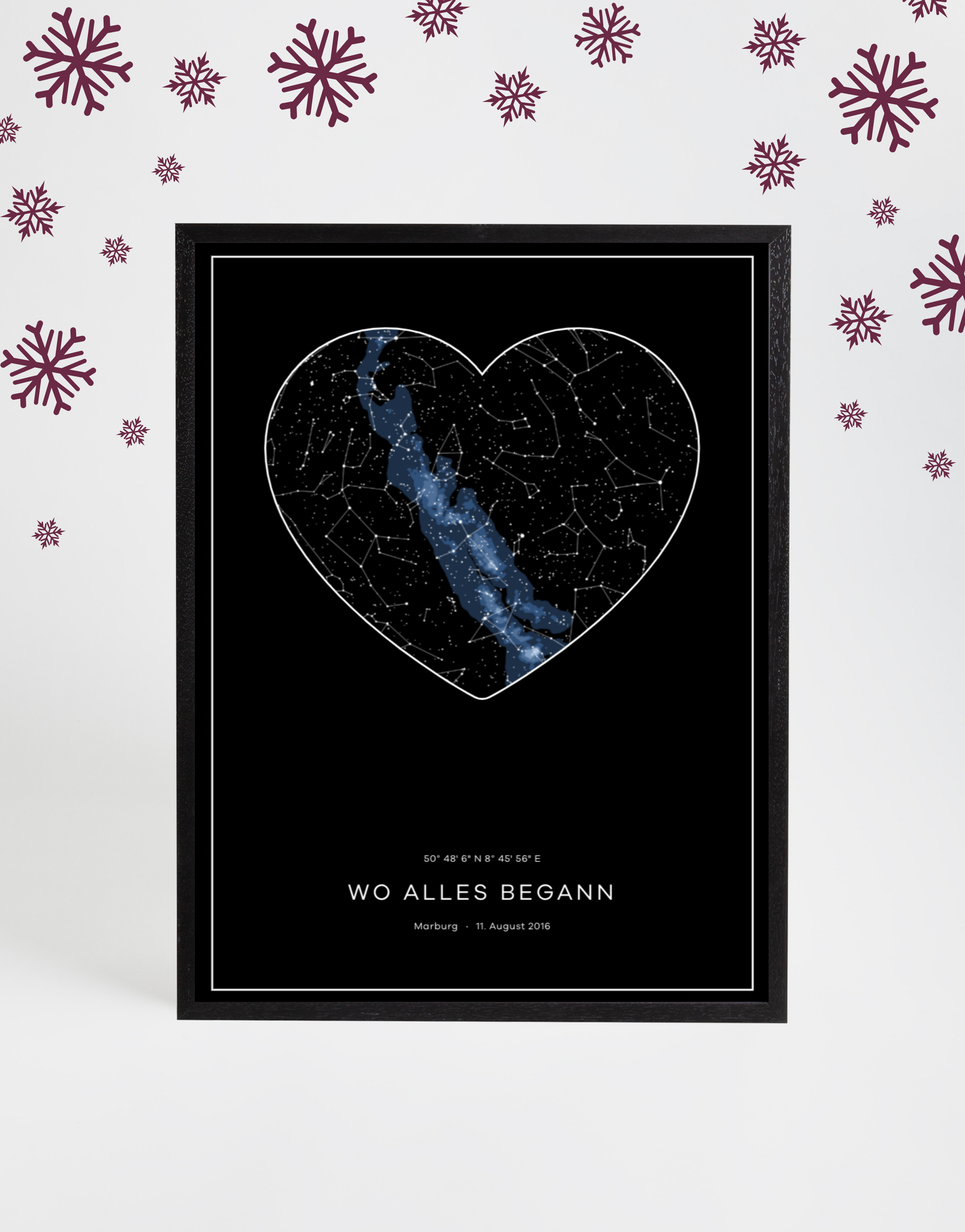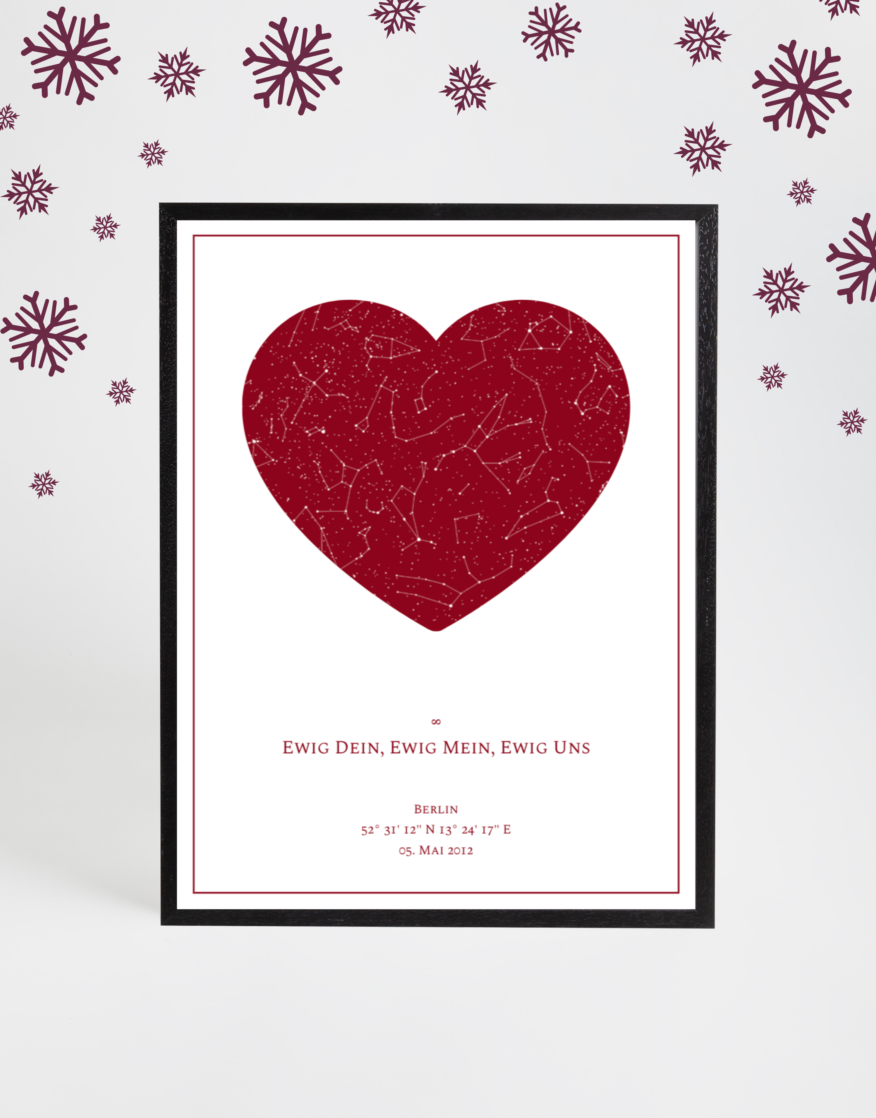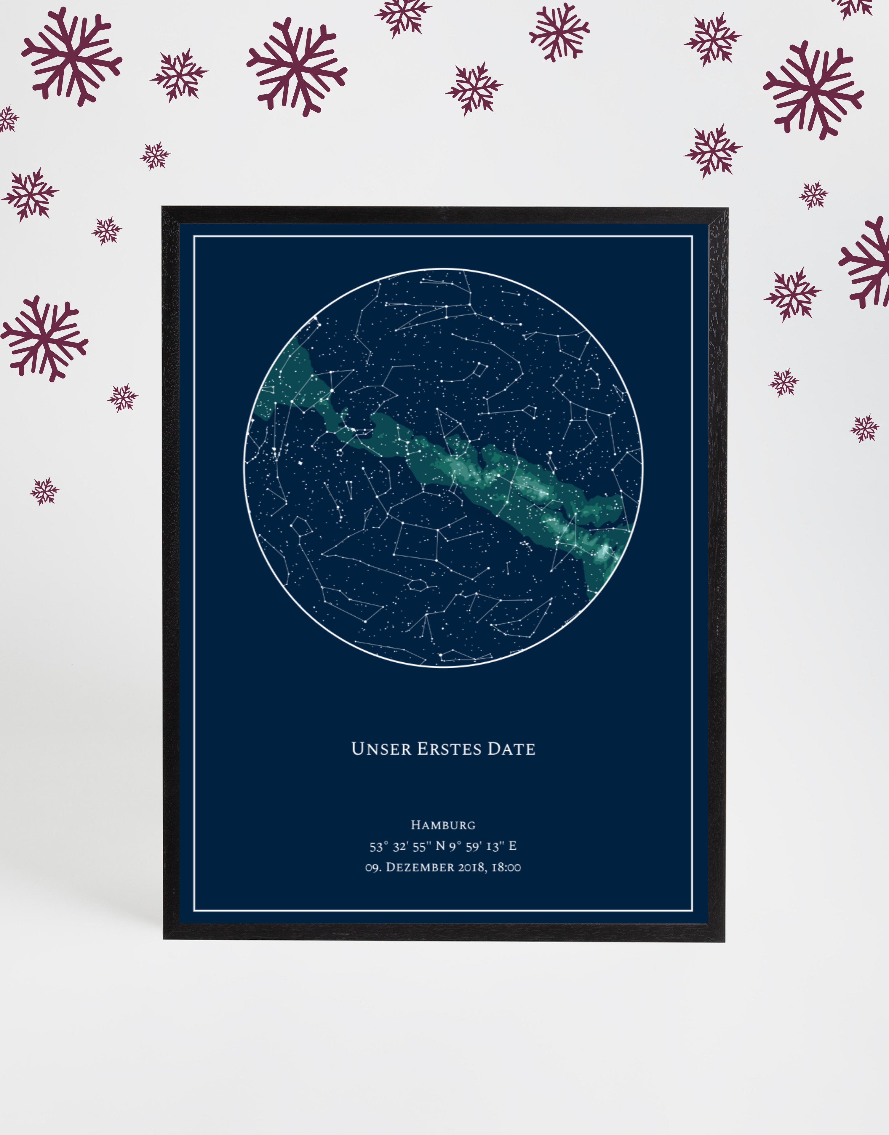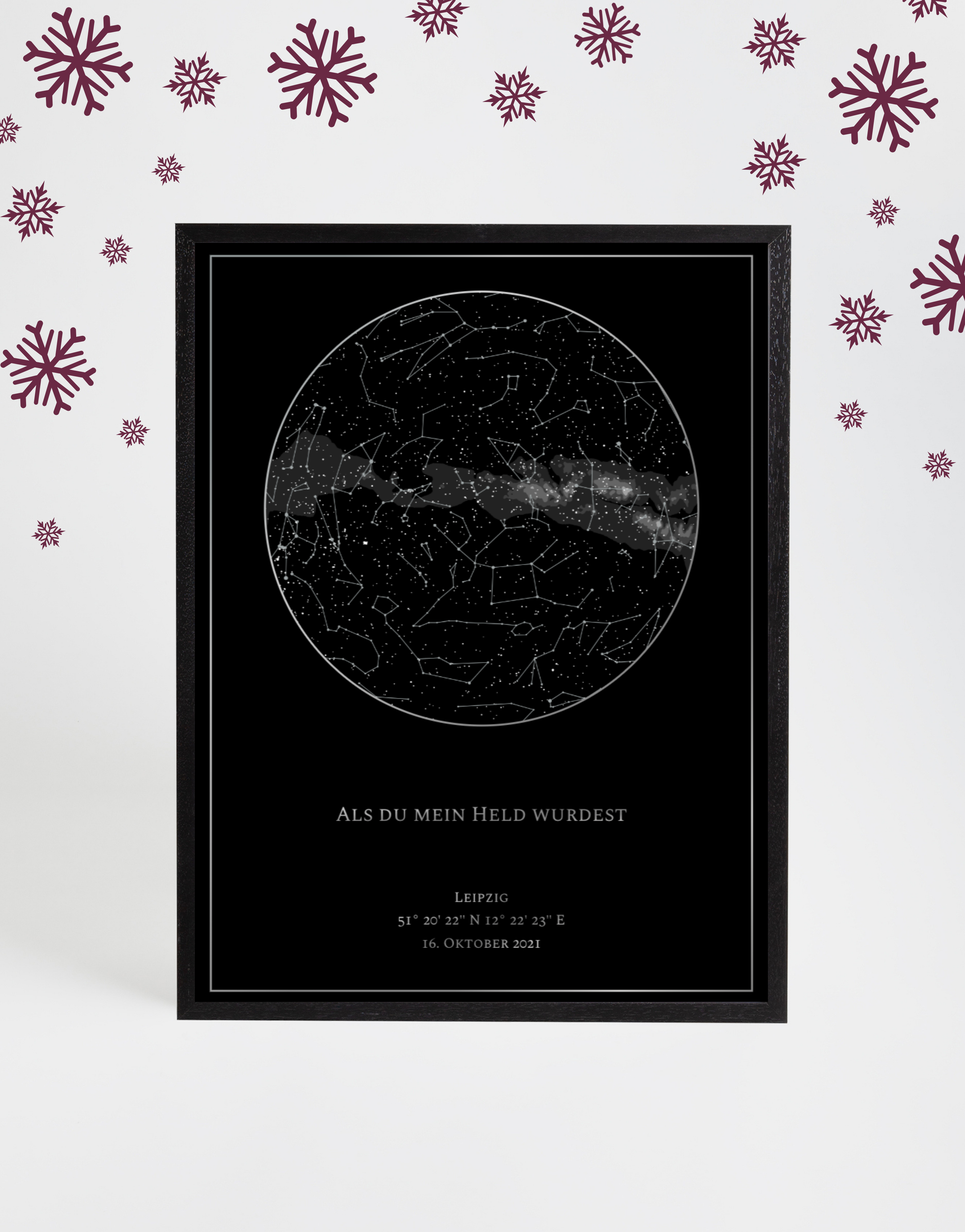 Zeige den Sternenhimmel eines besonderen Moments – das perfekte Weihnachtsgeschenk für Romantiker.